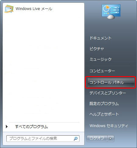 [スタート]から[コントロールパネル]をクリックします。