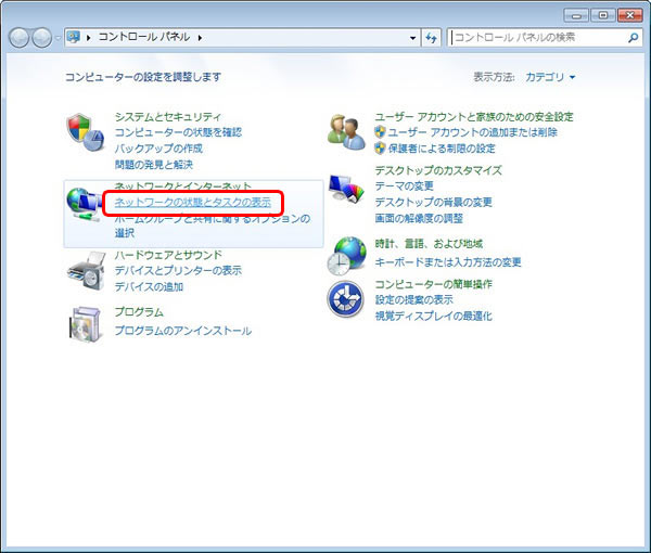 [ネットワークの状態とタスクの表示]をクリックします。