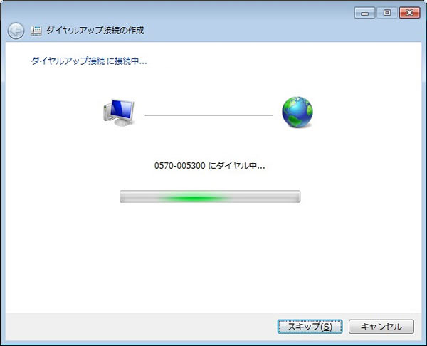 接続が始まりますので、[スキップ(S)]や[キャンセル]はクリックしないでください。